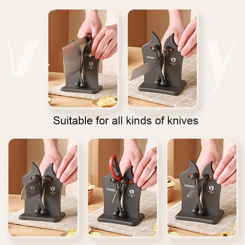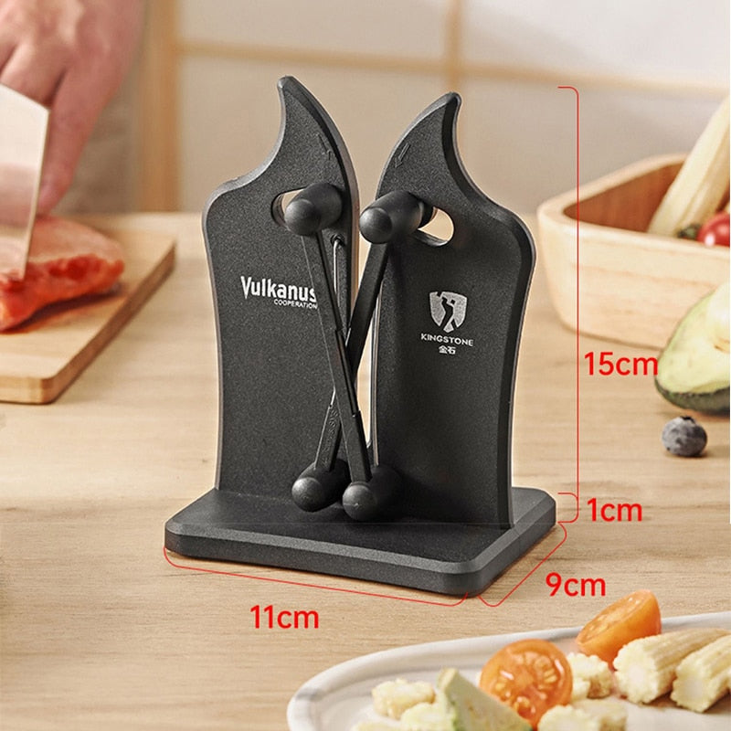 La conception ergonomique de l'affûteur rapide professionnel en fait un outil facile à utiliser pour tout le monde, des professionnels aux débutants. Sa base antidérapante garantit une utilisation en toute sécurité, tandis que son design compact le rend facile à ranger dans votre tiroir de cuisine ou sur votre plan de travail.
