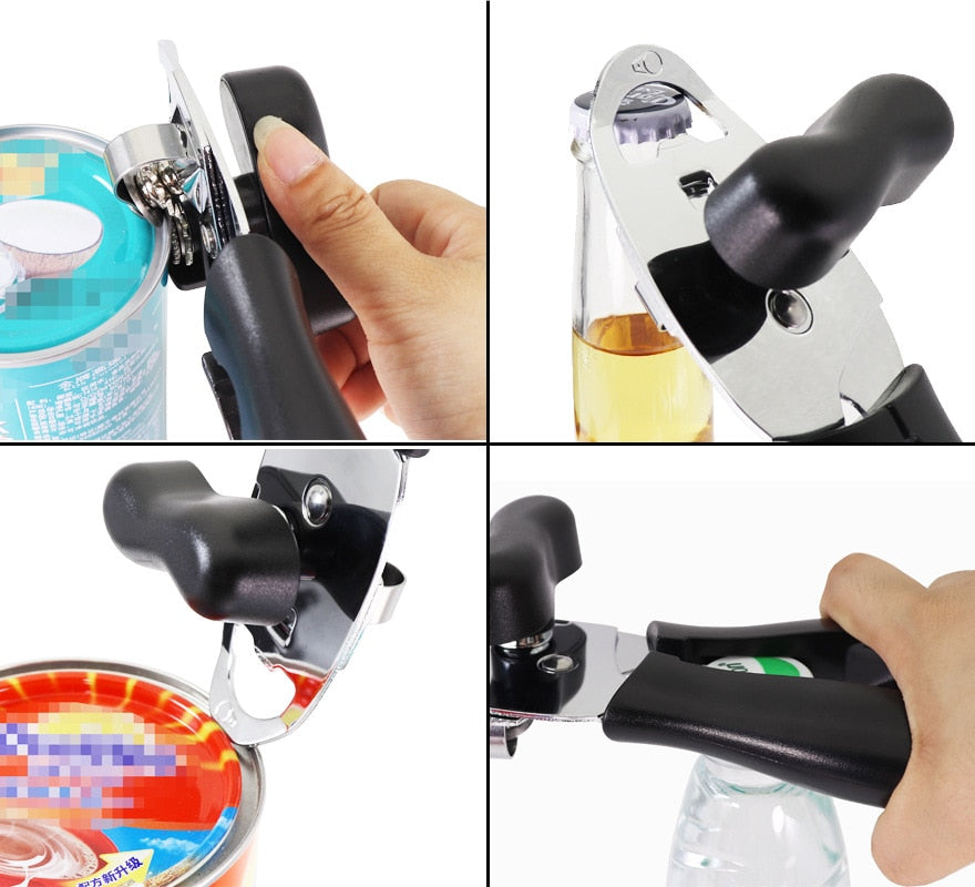 Ouvre-boîte manuel multifonctionnel quatre-en-un - Ouvrez facilement toutes vos conserves